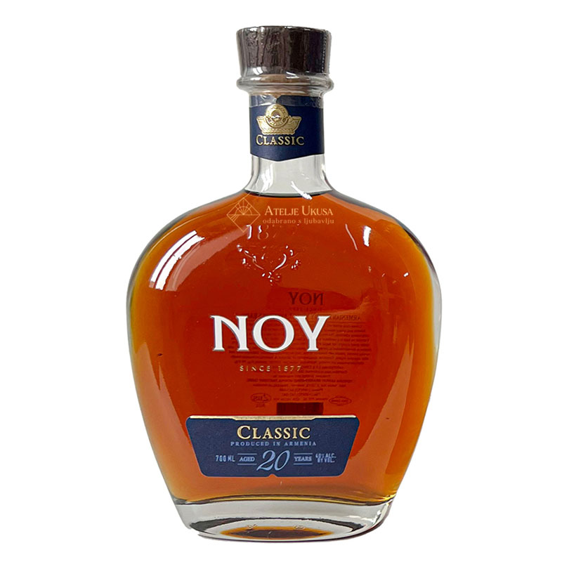NOY je legendarni jermenski konjak koji se proizvodi u čuvenoj Jerevanskoj fabrici brendija od 1877. godine. Nastaje u podnožju planine Ararat, od najfinijih sorti grožđa i vode iz planinskih izvora, a sazreva u kavkaskim hrastovim buradima — što ga čini jednim od najcenjenijih konjaka sa prostora bivšeg SSSR-a.