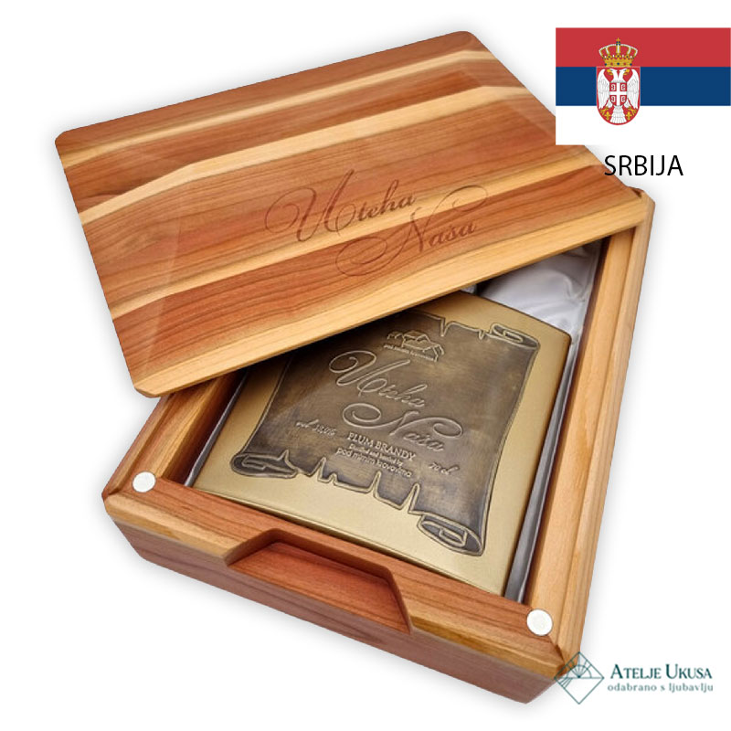 Uteha Naša Protocol je vrhunska rakija od 100% destilata autohtone sorte šljive ‘Moravke’, koja je odležavala 12 godina u novim hrastovim buradima, razvijajući bogat i slojevit ukus sa primetnim uticajem hrasta i dominantnim ukusom Moravke. Osim izvanrednog ukusa, ova rakija dolazi u jedinstvenoj ambalaži napravljenoj od drveta sljive Moravke, što je čini savršenim poklonom za ljubitelje vrhunske rakije.